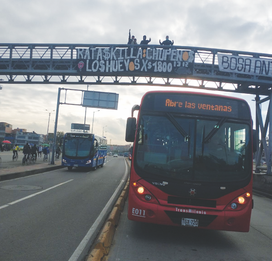 “La gente se enteró o despertó por la reforma tributaria que se presentó en el gobierno de Iván Duque. Cuando, en una entrevista, Carrasquilla —entonces ministro de Hacienda— hizo el ridículo con lo de los huevos, la gente no aguantó más y se organizó para salir a las calles el 28 de abril de 2021. Yo estaba fuera de Bogotá, pero en contacto con el parche de las barras bravas de Techotiba. Nos organizamos para reunirnos, para ir al Portal y arrancar hasta el centro y allá converger con toda la gente que venía desde diferentes lugares de la ciudad.